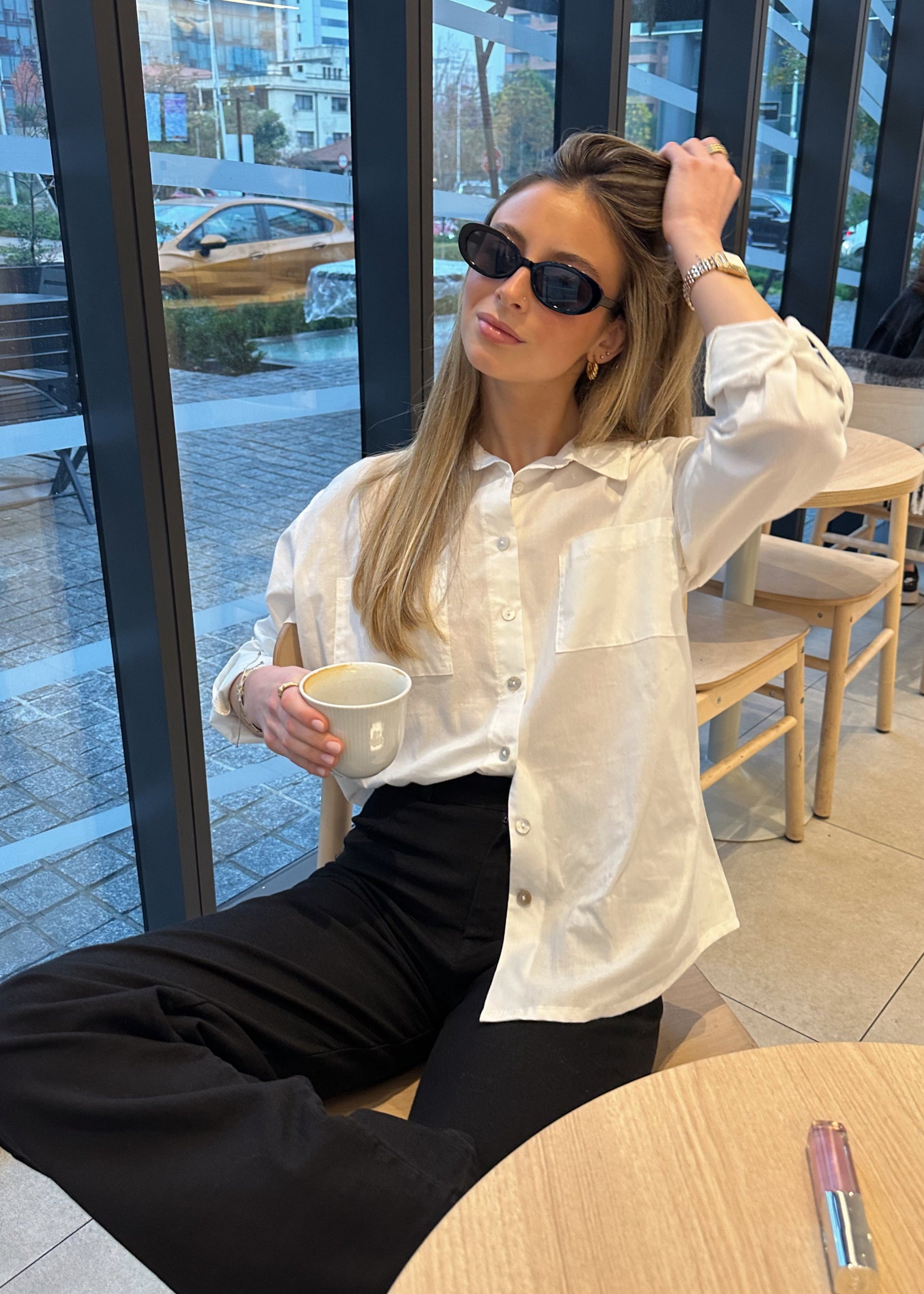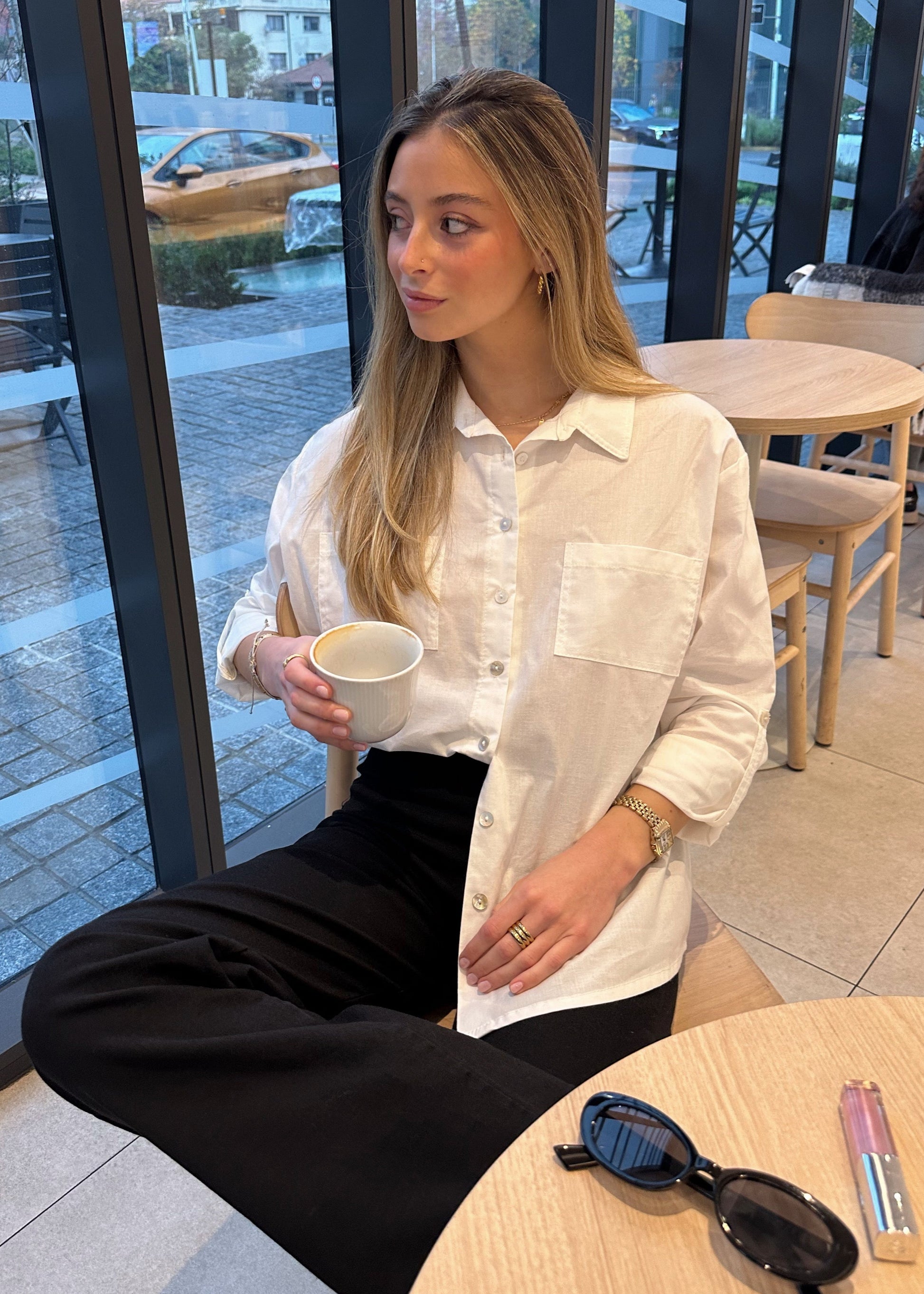 Confeccionado 100% en algodón, con botones perlados. Es manga larga, tiene la opción de amarrarla a 3/4.
